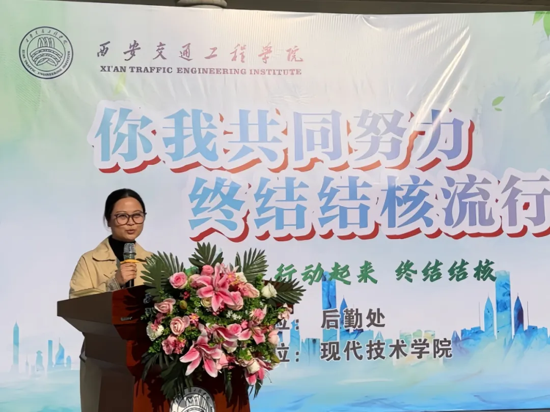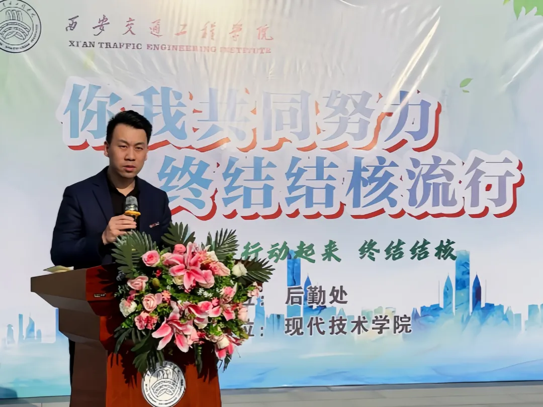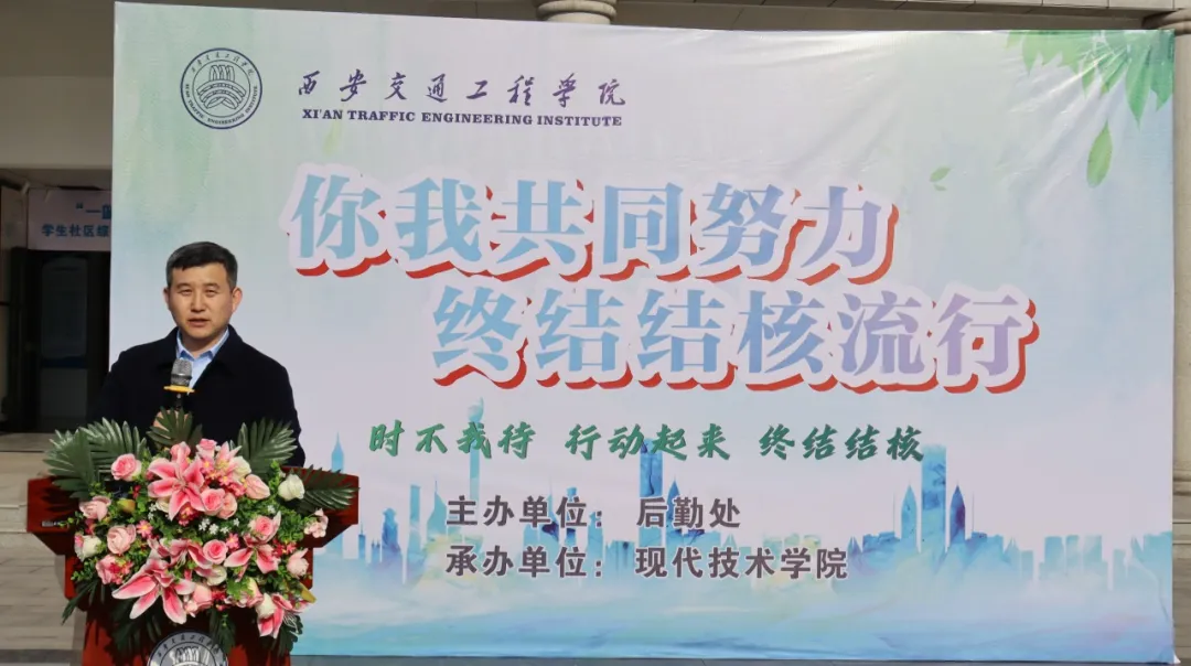 副校长赵征为启动仪式发表致辞,他表示,结核病是传染病中的“第一号杀手”,对于人的健康和体质造成极大的危害,大力开展结核病防治工作刻不容缓,呼吁广大师生要积极行动起来,成为防治结核病的宣传者和实践者,强调,一要加强学习,掌握结核病的防治知识,增强自我防护意识;二要积极参与学校组织的各项防治活动,如健康讲座、知识竞赛、义务宣传等,提高防治工作的覆盖面和影响力;三要关注身边的同学和家人,发现疑似病例及时报告、及时就医,防止疾病的传播和蔓延,为终结结核流行、实现健康中国目标不断努力。