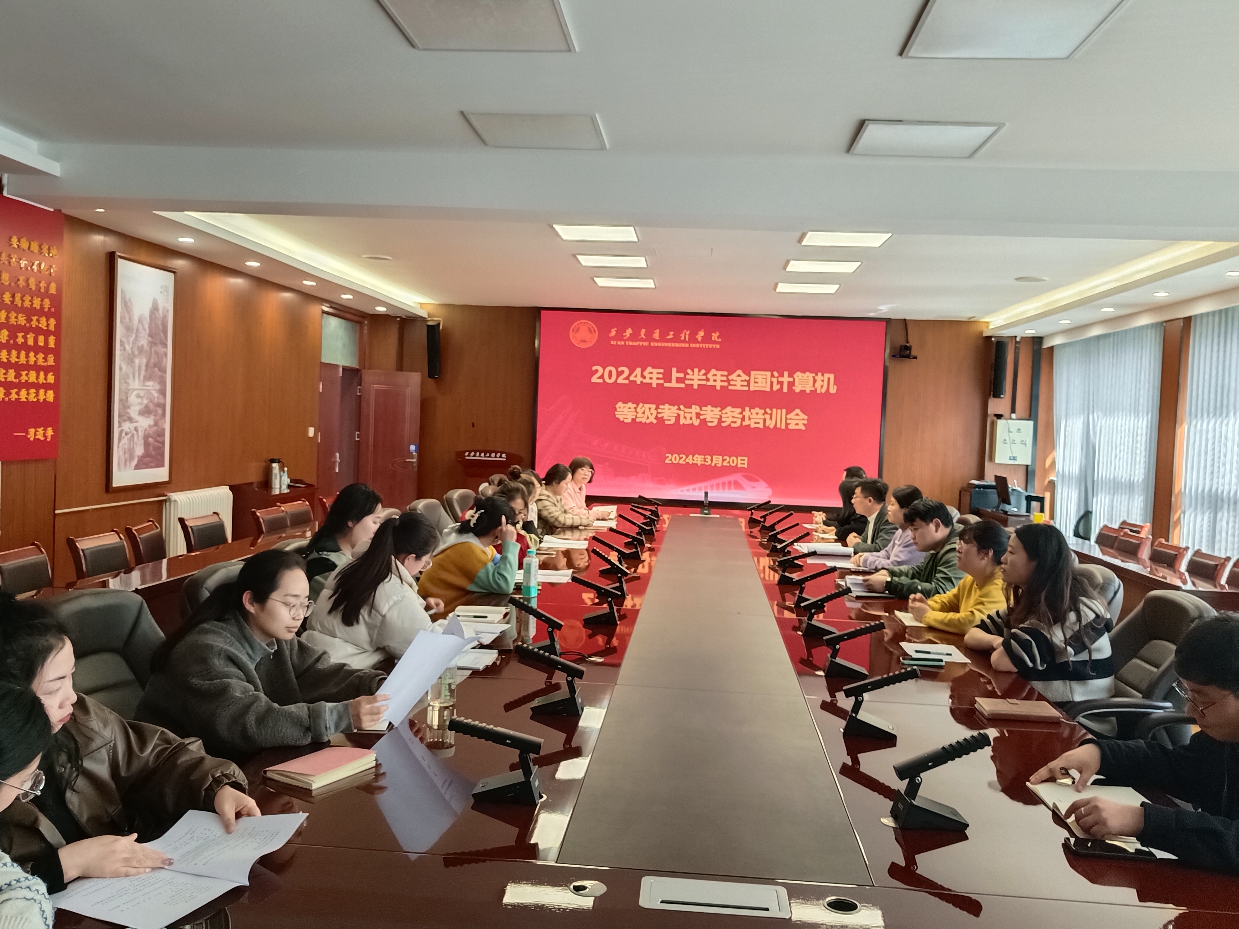 学校领导高度重视本次考试,为确保考试顺利进行,成立考试工作领导小组,校长曹庆年全面负责本次全国计算机等级考试工作,副校长张学堂负责考生组织工作、副校长赵征负责考试保卫及后勤保障工作,教务处等相关人员负责考务管理工作。考前教务处组织召开考务工作会议,针对本次考试软件版本确认、安全管理、保密措施、考风考纪、流程规范及突发事件应急处理等,提出工作要求,明确了考点工作人员与监考教师的工作职责。会后,各考场监考老师及全体考务人员,熟悉场地位置、检查考场卫生、考场设备以及考场标识张贴情况。