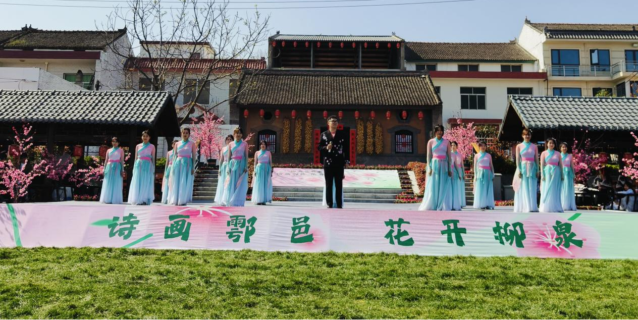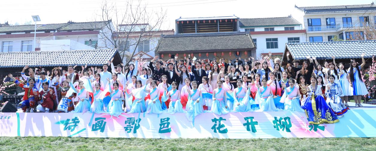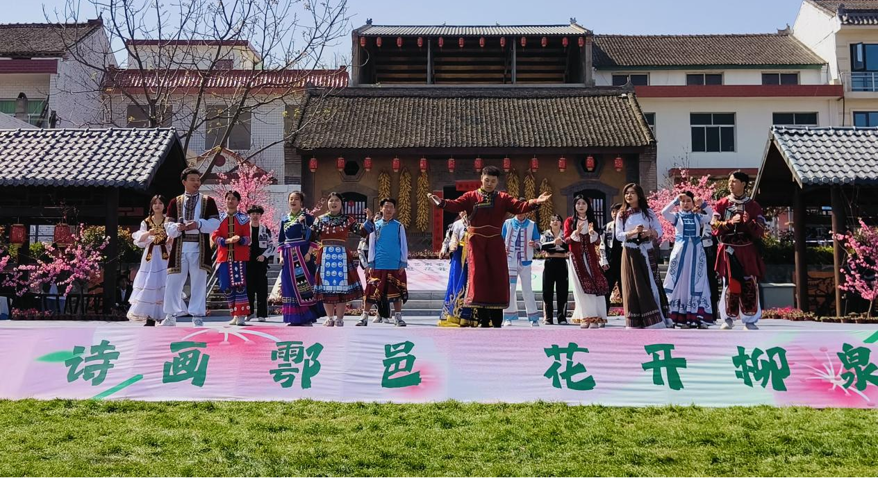 见水墨山峦,赏桃花雅集,观民俗展演,享艺术魅力。3月31日,由鄠邑区人民政府、区文旅局主办的2024年终南艺术季“诗画鄠邑,花开柳泉”系列活动,ky开元集团官网专场文艺演出在蒋村街道柳泉口村举办,ky开元集团官网150余名文艺志愿者参加活动。