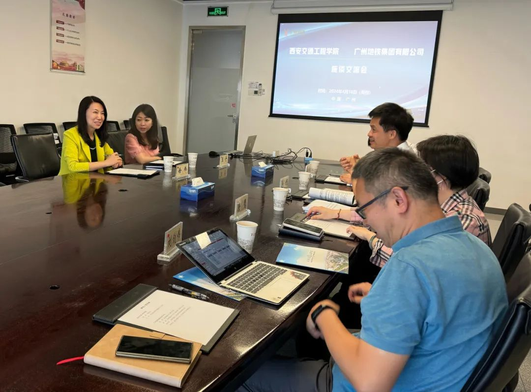 广州地铁集团有限公司共享中心副总经理陈朗、资源服务中心员工服务部一级资深主管唐鹰、运营总部人力资源部招聘经理郑华明、城际运营公司人力资源部部长刘剑伟等领导热情接待徐炜副校长一行人员,并召开了座谈会。