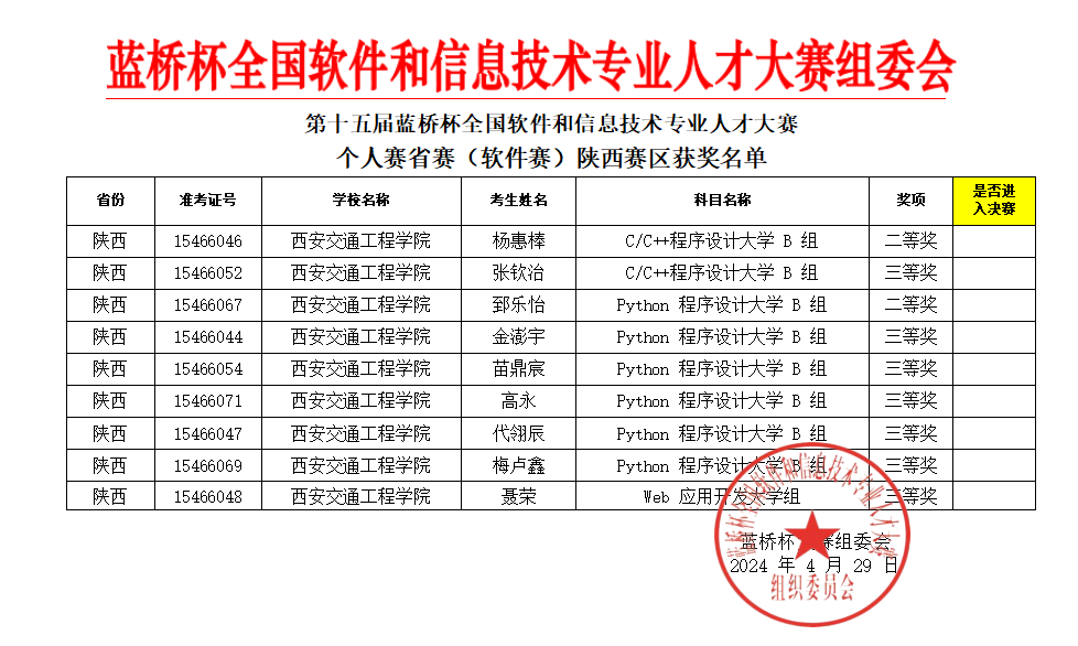 近日,第十五届“蓝桥杯”全国软件和信息技术专业人才大赛省赛成绩公布,ky开元集团官网获陕西赛区二等奖2项,三等奖7项。