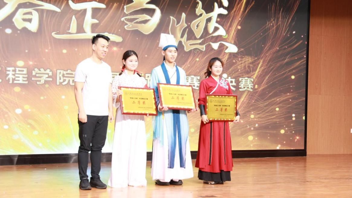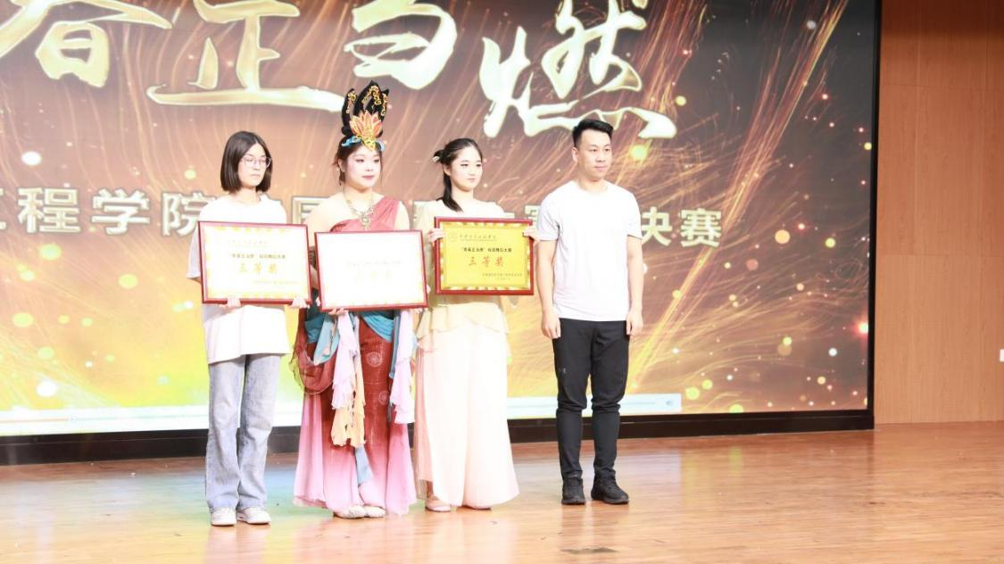 经评审团评分,人文与管理学院《女儿情》、土木与铁道工程学院《雪汉子》获得一等奖,土木与铁道工程学院《霍元甲》、现代技术学院《战地山花别样红》、《纸扇书生》获得二等奖,交通运输学院《人间乐》、中兴通信学院《清平乐-丝路幻影》、机械与电气工程学院《红马》获得三等奖,在场的领导为获奖集体颁发奖牌。