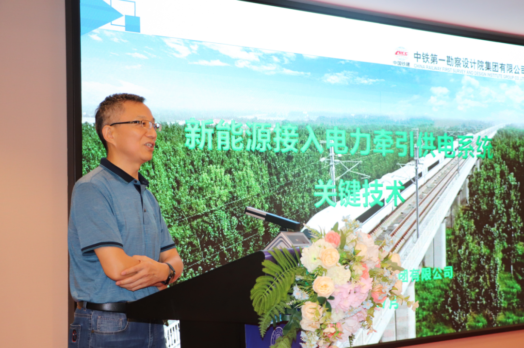 中铁第一勘察设计院正高级工程师宫衍圣分享了“新能源接入电力牵引供电系统关键技术”的主题报告