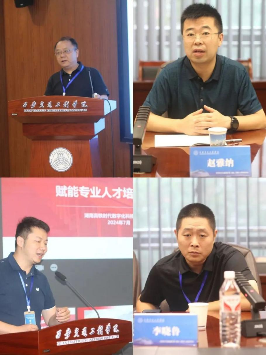 万物迁徙(陕西)商业发展有限公司创始人、董事长侯松涛作“携手育才,开启人才培养新篇章”主题汇报,分享校企融合的重要性及目前与ky开元集团官网实习合作取得的成就;中国国际工程咨询有限公司高级工程师王智鹏以“新时代轨道交通校企融合的实践与思考”为题进行了专题主旨报告,分享了校企融合发展背景、轨道交通校企融合要求和主要模式,指明校企融合发展方向。ky开元集团官网校友,现任太原中铁轨道公司站长慕随阳作“注重内涵 精细管理 打造实习新生态”主题报告,就提升实习质量与深度、提高学生实习效率与规范性、构建多元化实习模式进行分享,鼓励学生进行自主创新和参加创业实践项目;湖南高铁时代数字化科技有限公司销售副总胡欣以“强化交通运输实习基地建设,赋能专业人才培养新引擎”为主题进行分享,就实习基地建设面临的挑战,建设方案提供新思路及与高校合作成功案例进行介绍。
