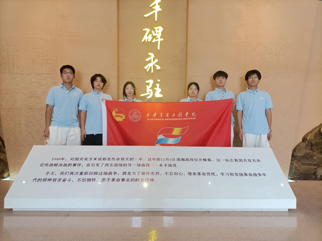追寻红色记忆,激发爱党热情。各实践队深入延安、渭南、铜川等烈士陵园、纪念馆地。虽然身处各地,但他们都怀着敬仰和敬畏之心,参观红色革命遗址,铭记先辈英勇事迹,感受红色历史,缅怀革命先烈。“天地英雄气,千秋尚凛然。”逝者长眠,但精神永存。尽管不在一起,但实践团成员都在献花,歌颂革命先辈的英雄凯歌;都在默哀,感叹革命先辈的壮烈牺牲;都在凝望,学习革命先辈的红色精神。一方碑,无数英雄史。仰望一座精神的丰碑,就是接受一次红色教育。一段又一段的红色历史,激励着每一位实践团成员。