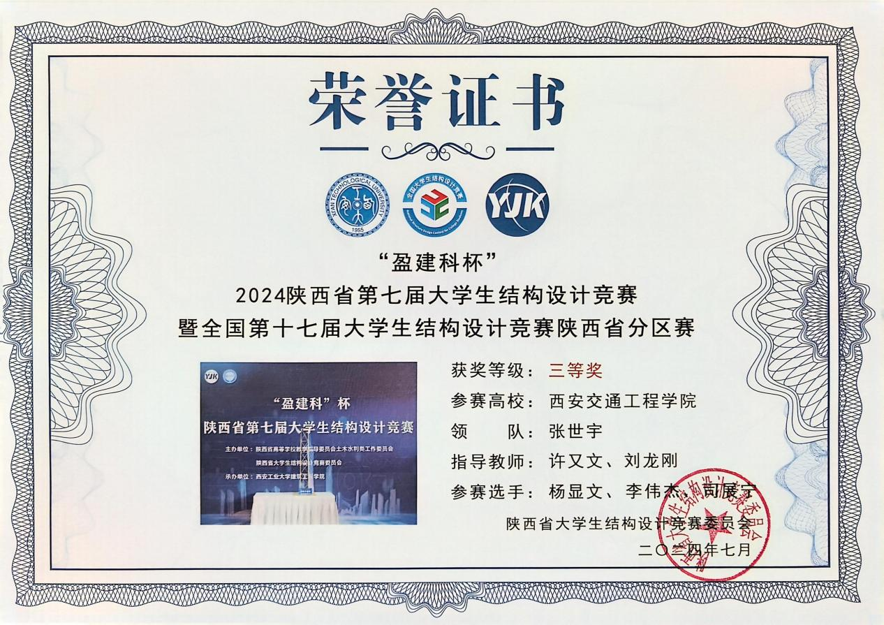 ky开元集团官网学生在陕西省第七届大学生结构设计竞赛中荣获佳绩