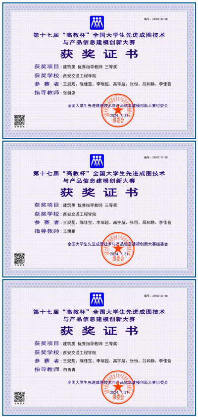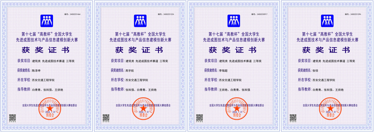 土木与铁道工程学院由张科强、王烘艳和白青青三位教师指导的10名学生代表学校参加全国总决赛。经过激烈角逐,王规规、陈佳宝2名同学分别获得建筑类先进成图技术赛道二等奖,高宇航、李瑞超、张恒、陈泽坤4名同学分别获得建筑类先进成图技术赛道三等奖;王规规、陈佳宝、李瑞超、高宇航、张恒、陈泽坤、吕和静、李佳音7名同学获得全国总决赛建筑类团体三等奖;张科强、王烘艳、白青青三位教师分别获优秀指导教师三等奖。