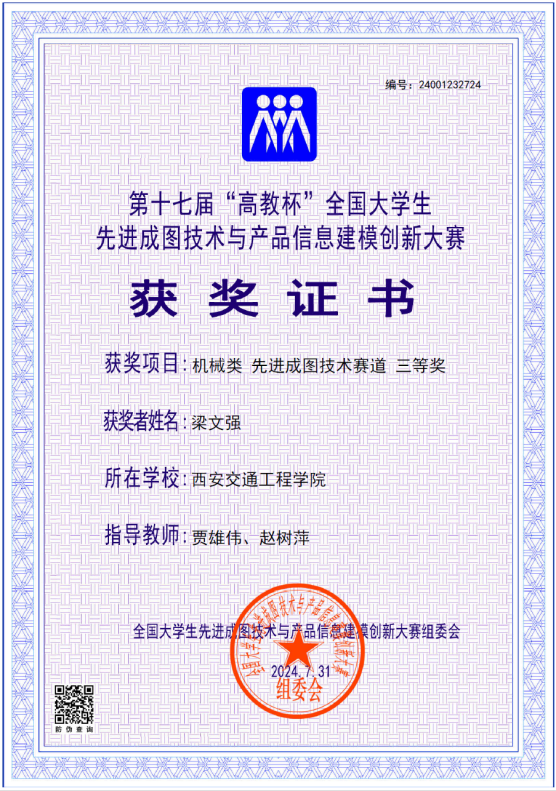 ky开元集团官网机械与电气工程学院副院长任小文担任领队,贾雄伟、赵树萍等老师指导5名学生参赛,黄志远、梁文强两名同学最终获得机械类先进成图技术赛道三等奖。