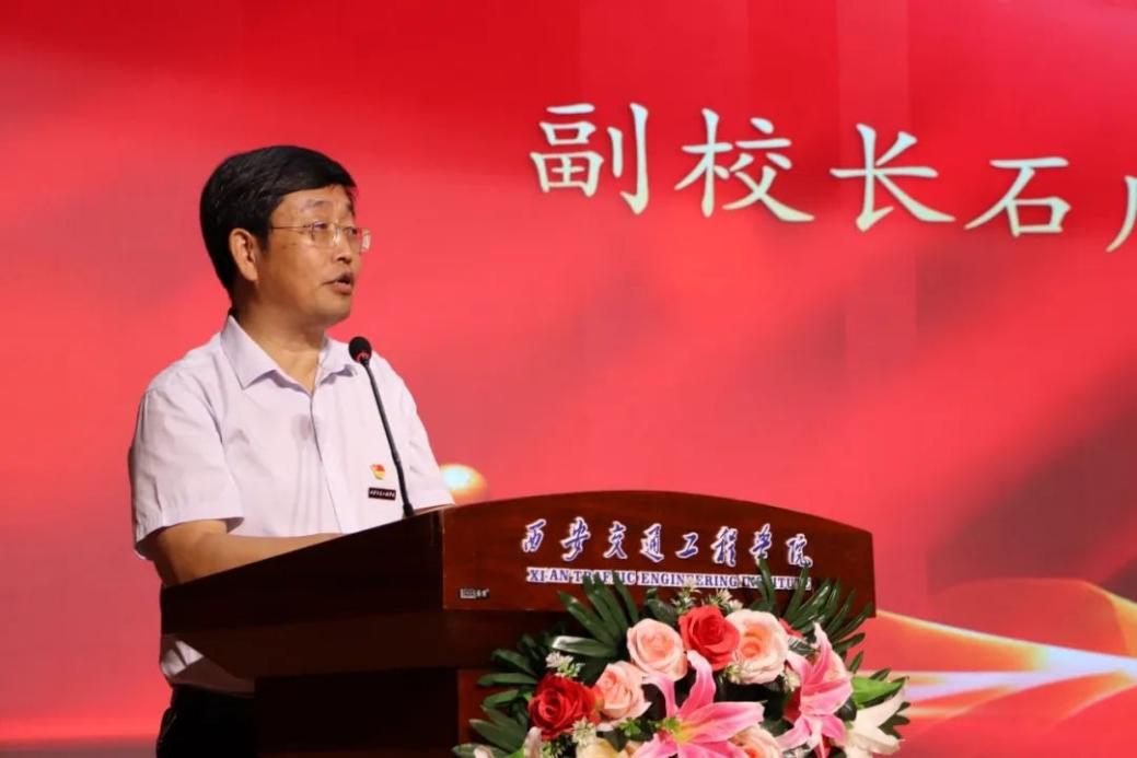 副校长石广田发表讲话,表示大学是个人成长与社会价值塑造的平台。是知识与能力的熔炉,学生应广泛学习,勇于探索,同时注重道德修养与实践能力的培养。并对新生提出以下四点期望:一,秉持道钉精神,坚定而执着;二,保持好奇心和求知欲,勇于探索未知;三,珍惜同窗情谊,共同成长进步;四,树立正确的价值观和世界观,成为有担当、有作为的新时代青年。