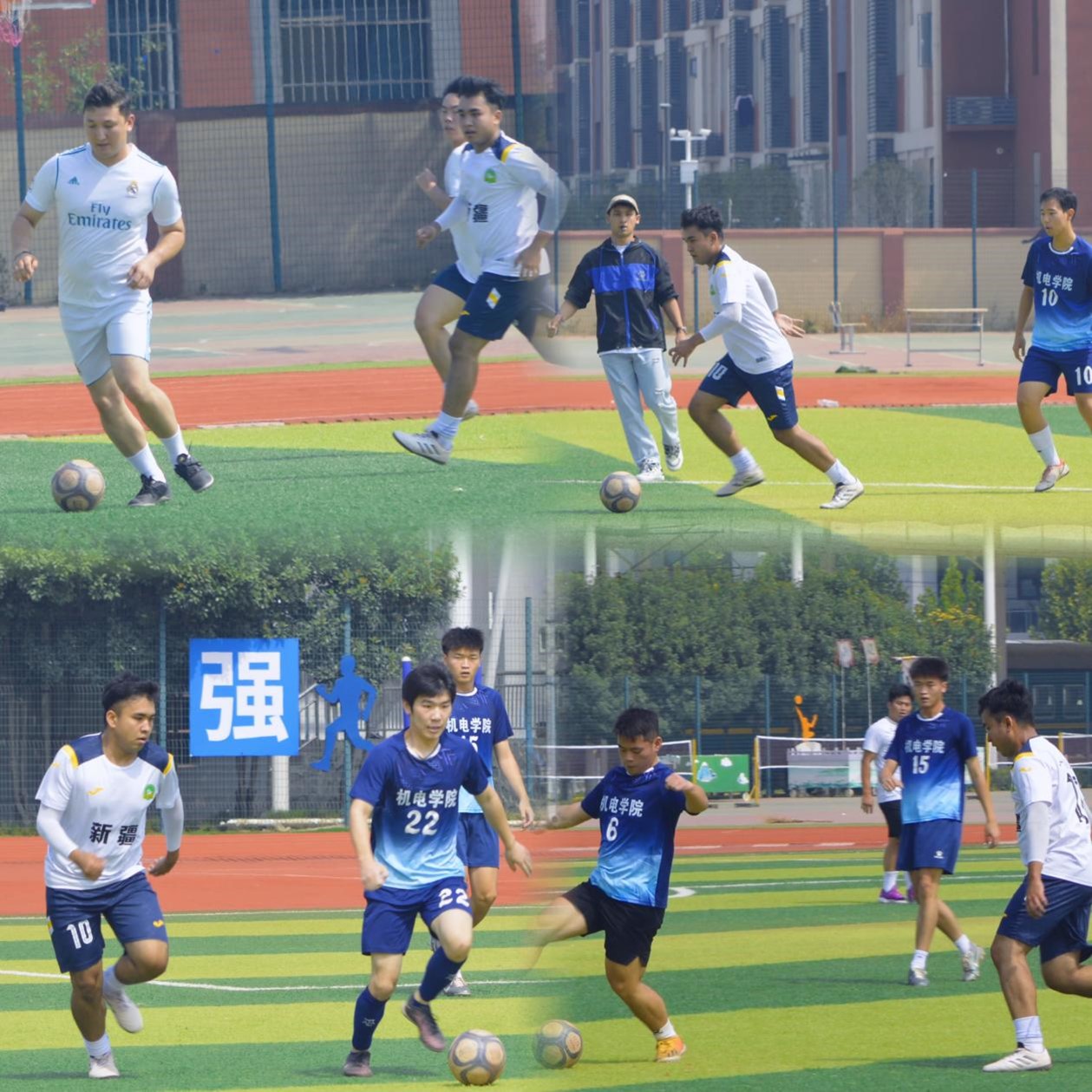 副校长张学堂的有力一脚正式拉开比赛帷幕。双方球员身着各色队服,犹如彩虹般绚丽多姿,他们在场上奔跑、拼抢,每一次传球、射门都凝聚着团队的力量与智慧。汗水浸湿了球衣,却浇不灭他们心中的火焰,比分交替上升,更激发了他们对胜利的渴望。