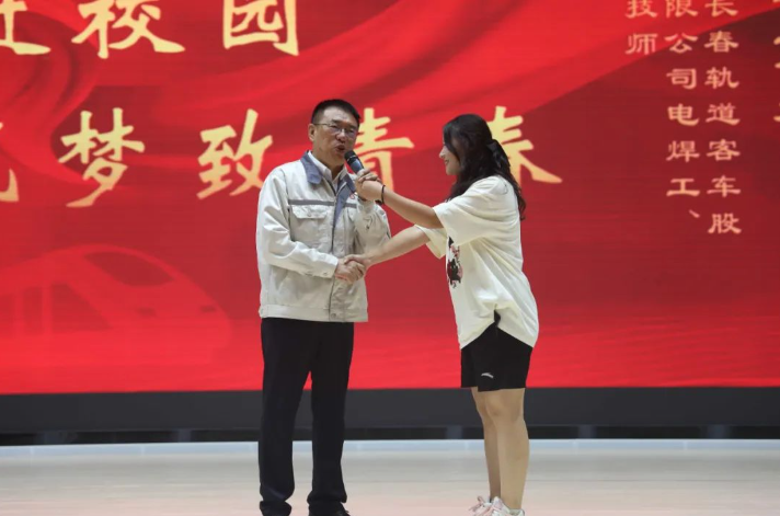 李万君还分享了中国高铁事业在党的领导下的发展历程,以及自己作为一名技术工人所见证的中国高铁从无到有、从制造到创造、从追赶到领跑的全过程。他鼓励同学们要珍惜当下优越的学习生活条件,把个人的理想同国家的发展紧密结合起来,发扬精益求精的工匠精神,好好学习、努力奋斗,为新时代中国梦的实现贡献自己的力量。
