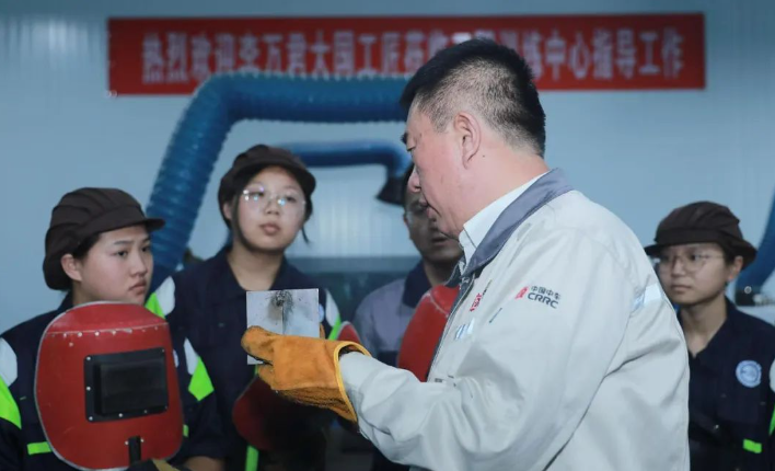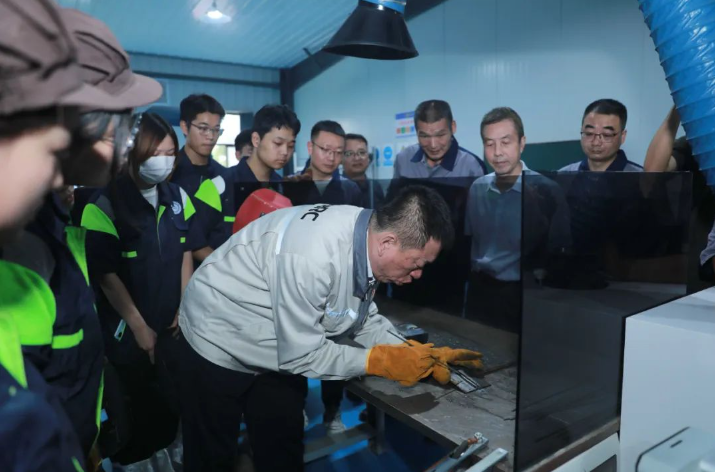 会前,李万君亲临工程实训教学中心观看师生们制作的焊接模型,交流了制作流程和制作工艺,高度肯定了学生作品。参观时李万君对正在进行焊接实训的学生们进行了现场指导。李万君展示出的高难度焊接技巧,为学生们提供难得的学习机会,让学生们亲眼见证技术的魅力。