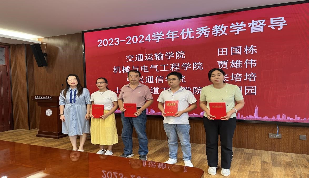 随后,张小菊宣读了《关于表彰2023-2024学年优秀教学督导员的通知》,副校长吴伟、校长助理潘春辉、质评处副处长张小菊为2023-2024学年优秀教学督导员颁发荣誉证书。