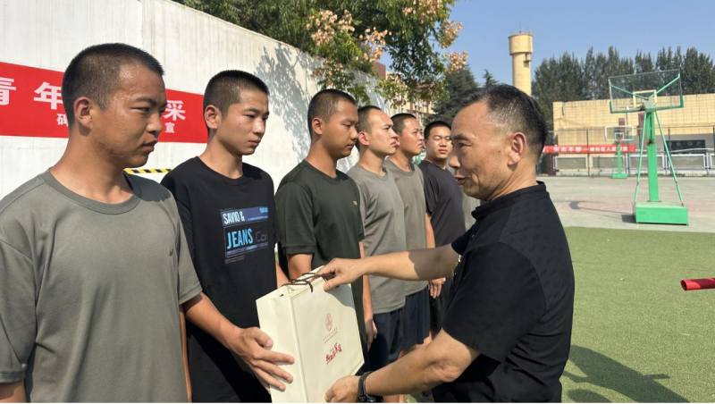 张学堂代表学校全体师生,向即将踏上军旅生涯的同学们表达了诚挚的祝福,并为每位新兵发放了纪念品。他要求,在部队,纪律严明,听从指挥是每一位军人的天职。无论面对何种困难都要保持坚定信念,勇担责任,在军营中绽放出属于自己的光彩。