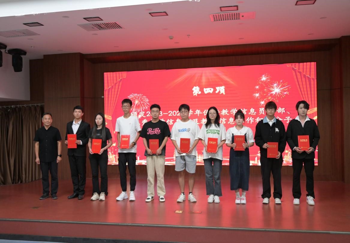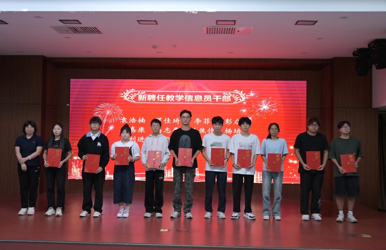 校长助理潘春辉和质评处副处长李妍分别为2023-2024学年优秀教学信息员及教学信息工作积极分子颁发荣誉证书;质评处副处长张小菊从机构及职能、学生教学信息员任职条件、工作职责、工作方式及要求、教学信息员聘任与管理等方面明确了学生教学信息员的重要性和职责。并为新聘任的教学信息员干部颁发聘书;教学信息反馈中心副主任叶斯弘同学对2023-2024学年教学信息反馈中心工作作总结发言;教学信息反馈中心副主任赵旭豪同学作新一届教学信息员工作安排。