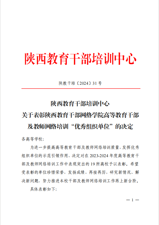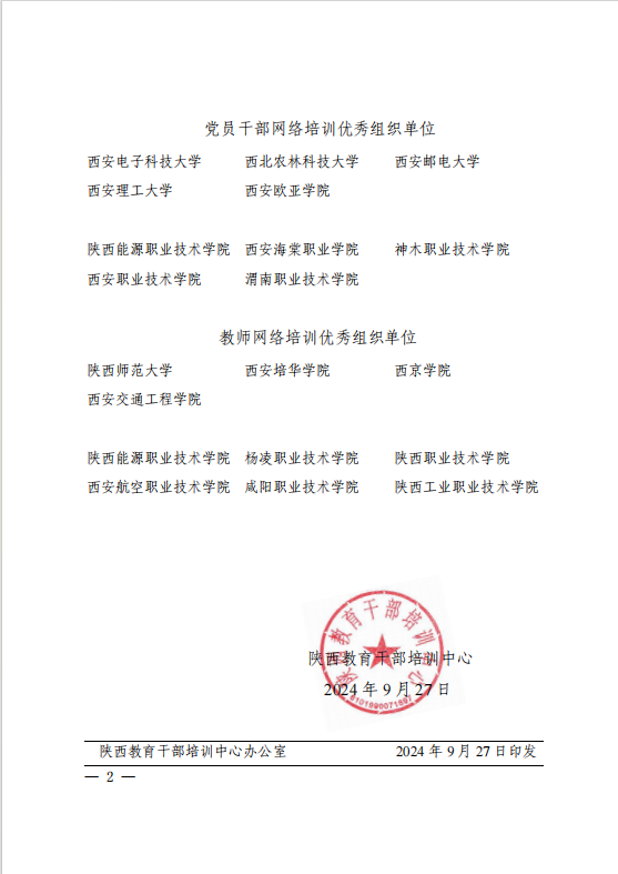 2024年9月26日下午,陕西省高校培训工作调研会暨表彰大会在西安石油大学明德校区顺利开展,ky开元集团官网荣获“2023年度陕西本科高校干部网络培训优秀组织单位”。ky开元集团官网人事处处长兼教师发展中心主任朱东霞代表ky开元集团官网出席此次会议。