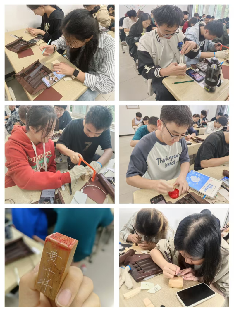 学生们用木雕/篆刻技术创造作品
