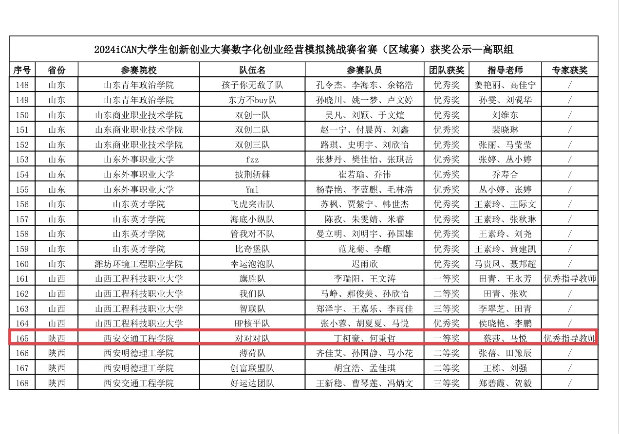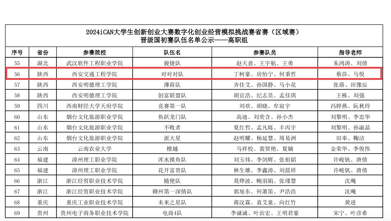 近日,由iCAN大学生创新创业大赛组织委员会主办的iCAN大学生创新创业大赛数字化创业经营模拟挑战赛,省赛(区域赛)圆满落幕。ky开元集团官网由蔡莎、马悦两位老师指导的丁柯豪、房怡宁、何秉哲组成的参赛队伍荣获陕西省省赛高职组一等奖,并顺利晋级国家级决赛。