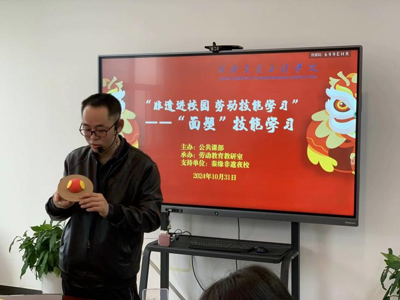 为进一步丰富劳动教育课程课堂内容,同时让中华优秀传统文化真正走进学生的心里,劳动教育教研室计划开展一系列非遗技能培训。2024年10月31日,由公共课部主办、劳动教育教研室承办的面塑技能学习顺利进行,本次培训邀请了白鹿原王氏面塑非遗传承人王建勇老师授课,学校有关部门与劳动教育教研室的老师共同参与。