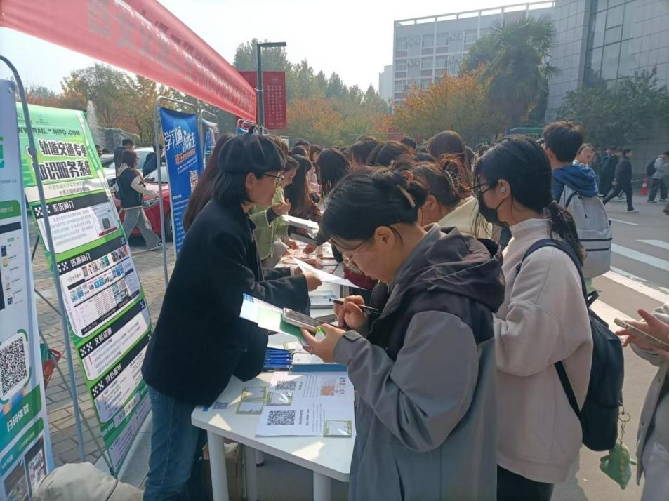 上午的数字资源宣传推广与咨询分别在学术报告厅门前和学生餐厅门前进行。上午10:00到11:20,数字资源推广活动在学术报告厅门口拉开帷幕,图书馆馆员与数字资源商家的工作人员通过展板讲解、发放宣传册、现场演示等多种形式,向师生们展示了数字资源的丰富内容、强大功能以及便捷的使用方法。中午12:00,数字资源推广活动在学生大餐厅门口继续进行,现场学生依然络绎不绝,热情不减。