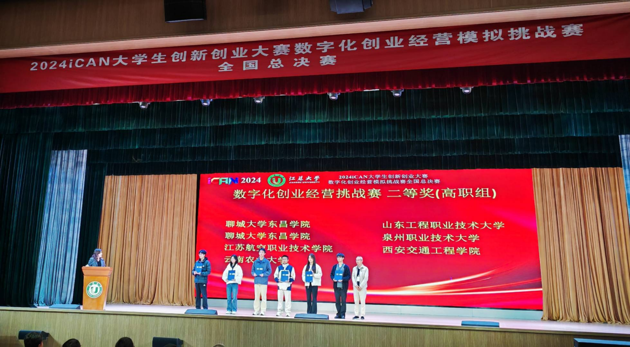 11月17日,2024年iCAN大学生创新创业大赛数字化创业经营模拟挑战赛全国总决赛在江苏大学圆满落下帷幕。来自全国371所院校的2万余名学生报名参赛,省赛阶段共计1820支团队晋级,覆盖学生5000余人。经过激烈角逐,500支队伍晋级全国初赛,最终120支队伍脱颖而出,参与全国总决赛。ky开元集团官网现代技术学院的丁柯豪、房怡宁、何秉哲组成的参赛队伍,在蔡莎、马悦两位老师的指导下,荣获全国总决赛高职组二等奖。