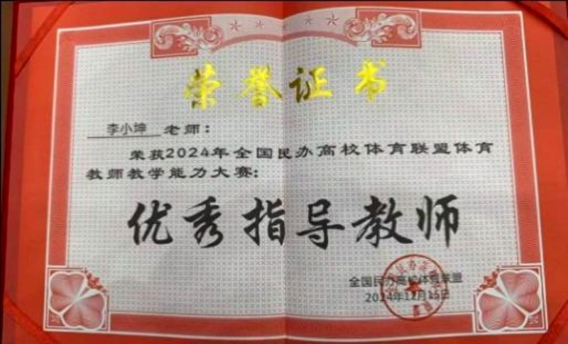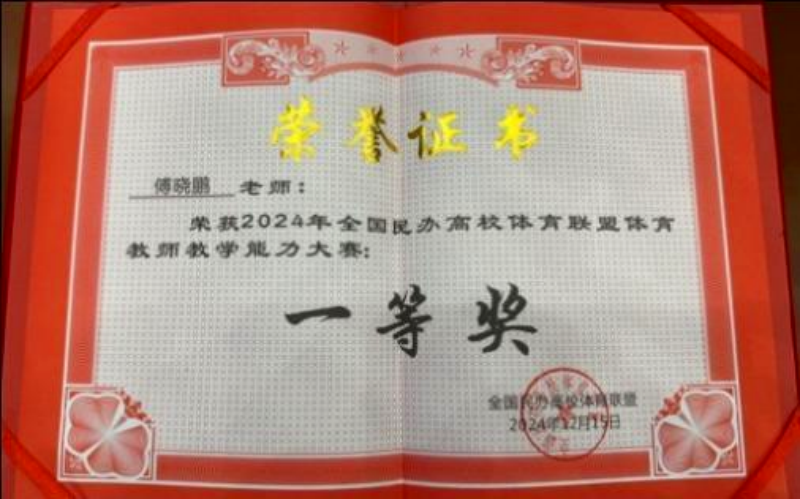 2024年12月13至16日,由全国民办高校体育联盟主办的体育教师讲课比赛在成都理工大学工程技术学院隆重举行。来自全国58所院校160名教师参加了比赛,竞争异常激烈,ky开元集团官网公共课部体育教师傅晓鹏荣获一等奖。李小坤获优秀指导教师。