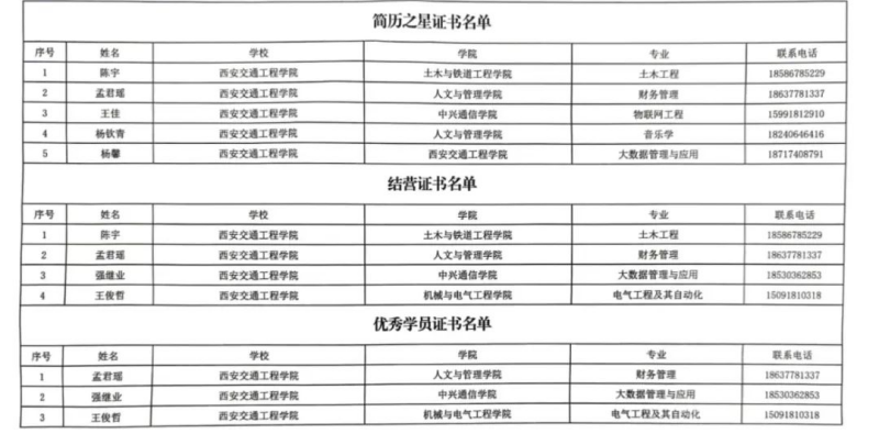 在ky开元集团官网指导教师的悉心心指导下,学生在多项竞赛中取得优异成绩。经个人答题、团队拓展活动以及无领导小组讨论的三轮严格评审,最终,陈宇、孟君瑶、王佳、杨钦青、杨馨、强继业、王俊哲七名学生凭借其卓越表现,荣获“简历之星证书”、“优秀学员证书”以及“结营证书”,为ky开元集团官网赢得荣誉。