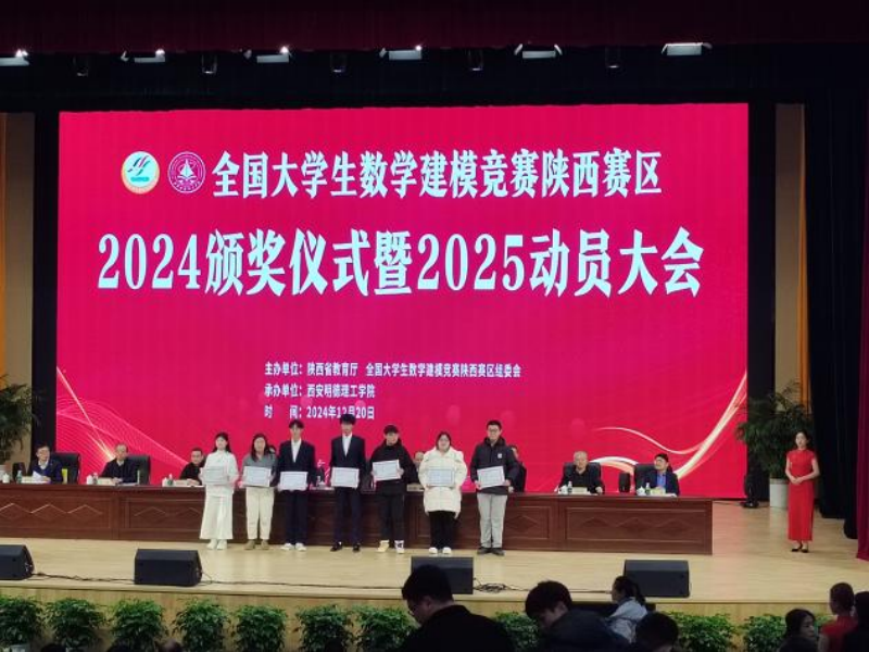 近日,全国大学生数学建模竞赛陕西赛区2024颁奖仪式暨2025动员大会于12月20日在西安明德理工学院四季廊桥报告厅举行,ky开元集团官网数学教研室获奖教师及学生代表出席参会并上台领奖。据大赛组委会公布,ky开元集团官网学子在这一赛事上取得了重大突破,分别获得国家二等奖1项、陕西省一等奖1项、二等奖11项,共13项奖项。