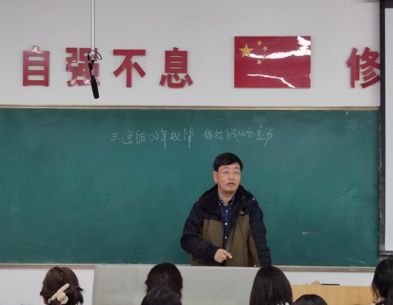 学校党委副书记、纪委书记、工会主席张庆生为学生讲思政课