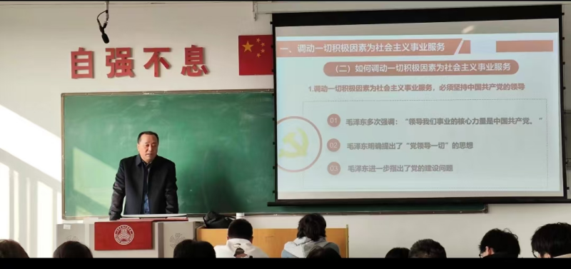 2024年11月21日上午,校长曹庆年深入教学一线,分别到1-101教室为学前教育24Z1班和4-306教室为交通运输24Z5班全体学生讲授了4学时主题为“社会主义革命和建设的开展”的思政课。课堂上,曹庆年以崇高的政治站位、严谨的治学思维,从马克思辩证唯物主义和历史唯物主义方法论视角出发,围绕中华人民共和国的成立和新生人民政权的巩固、社会主义道路的艰难探索和曲折发展、社会主义革命探索过程的经验总结三个方面,理论和实践相结合,紧跟历史主线,重点突出,教育和引导学生全面而准确地理解“历史和人民为什么选择了社会主义,开创了中国特色社会主义道路”。他殷切告诫学子,学习是一个漫长的过程,要多看好书,特别是哲学方面书籍,才能提升人的认知能力、思考能力、明辨是非和分析判断历史的能力。新时代大学生不仅要在学术上追求真理,更要在生活实践中,树立理想信念,善于学习科学知识、提升专业素养,用实际行动展现新时代青年的风采。