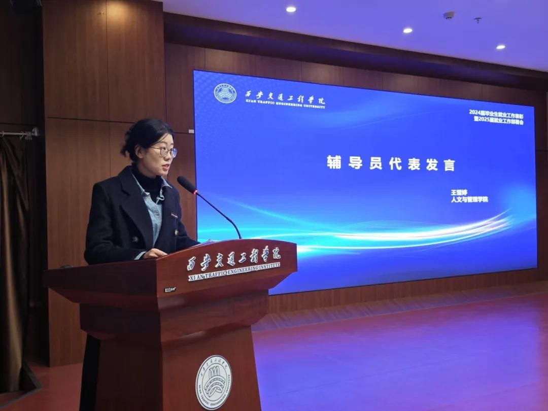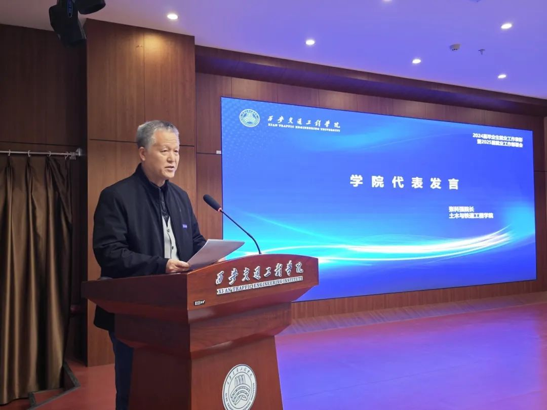 土木与铁道工程学院院长张科强从2024届毕业生就业去向落实率、少数民族学生就业率、考研升学率以及访企拓岗成效等方面分享了学院在就业工作中的经验和做法。他表示,面对2025年更加严峻的就业形势与行业转型升级挑战,学院将通过优化人才培养、调整课程内容、拓宽就业渠道等措施,鼓励毕业生响应国家号召,赴中西部地区及一带一路沿线国家就业;就业工作先进个人代表王雪婷在发言中提出,要进一步明确工作职责,准确理解就业工作会议精神并做好上传下达。