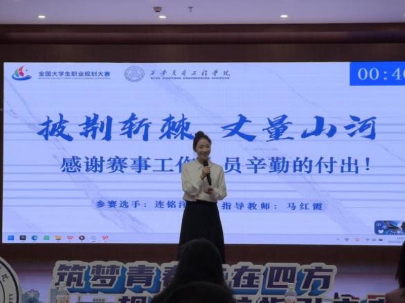 校赛决赛当天,选手们在PPT展示和现场答辩两个环节中充分展示出了清晰的职业规划,结合个人实际情况,分析了自身的优势与不足,提出了切实可行的职业目标和行动计划。评委们则从职业规划的合理性、可行性、创新性等方面进行综合评判,给予宝贵建议。