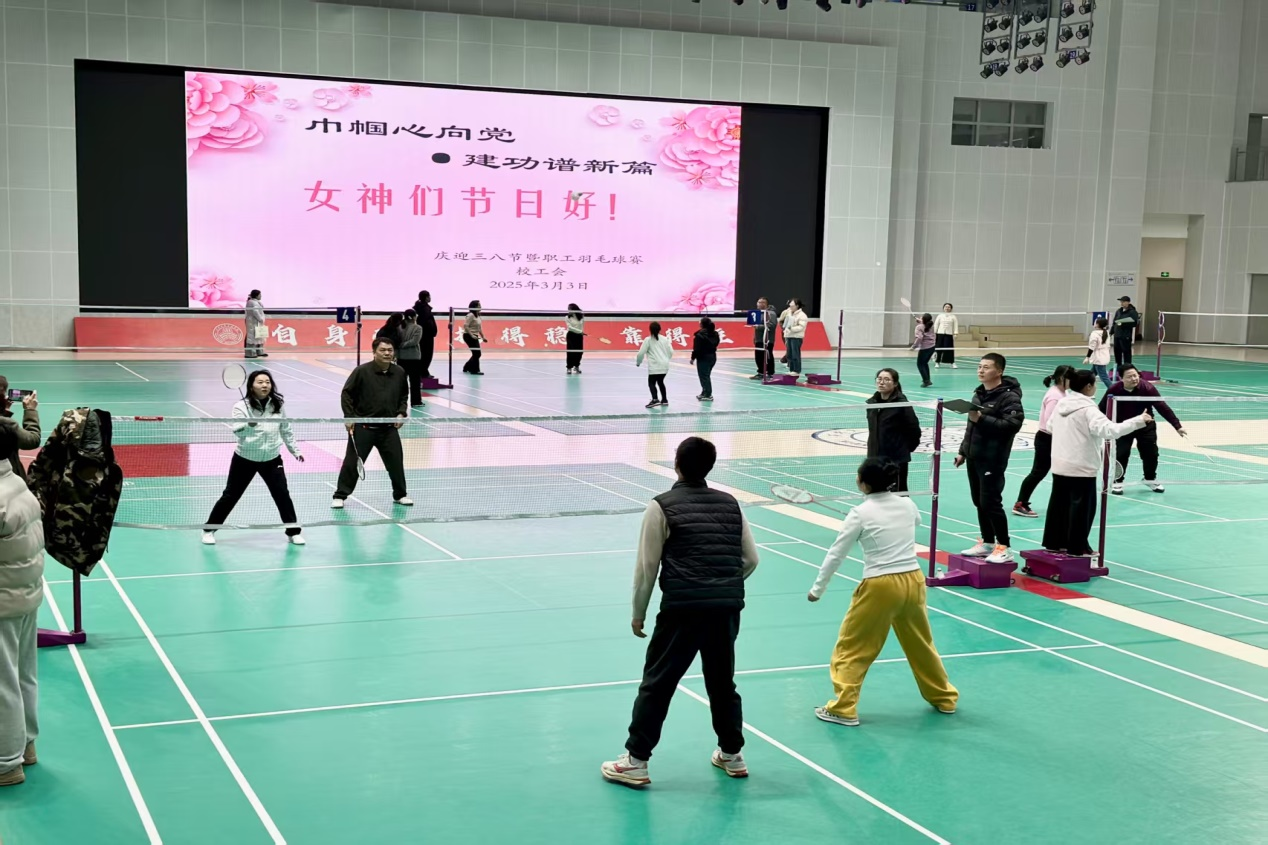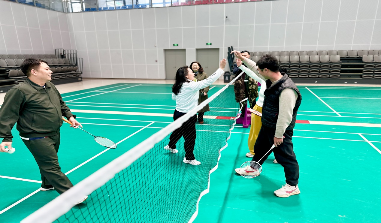 本次活动内容丰富多样,涵盖了羽毛球赛、趣味运动会、读书活动、健康知识讲座等,满足了不同女教职工的兴趣需求。3月3日下午,羽毛球赛在学校体育馆率先拉开帷幕。赛场上,女教职工们身姿矫健、活力四射,时而大力扣杀,时而轻盈吊球,精湛的球技和顽强的拼搏精神赢得了现场观众的阵阵喝彩。校领导张慧理事也拿起球拍,与教职工们同场竞技,气氛热烈而融洽,充分展现了学校对女教职工的关怀以及对体育活动的重视。