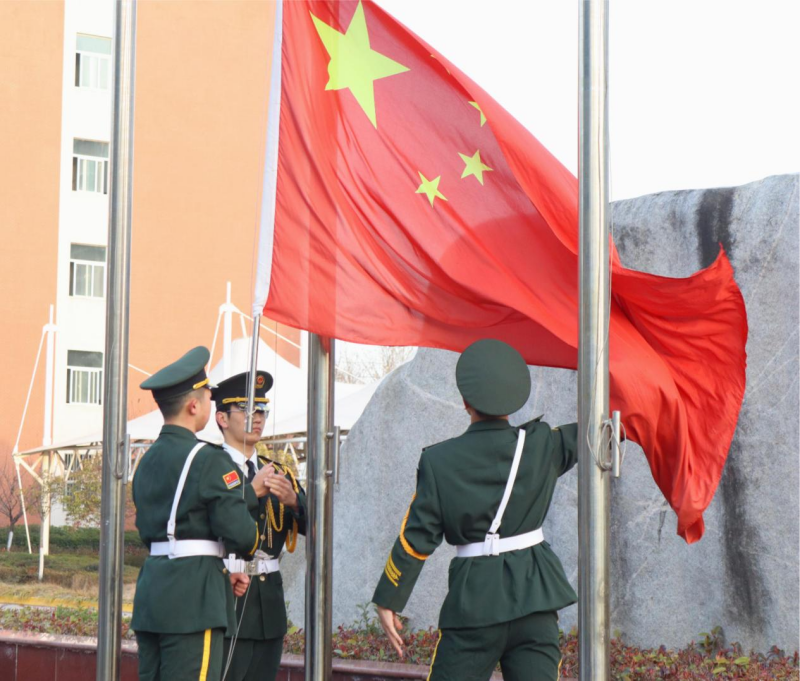 清晨,阳光洒满校园,伴随着雄壮的国歌声,鲜艳的五星红旗冉冉升起,全体师生肃立,向国旗行注目礼,表达对祖国的无限热爱和崇高敬意。