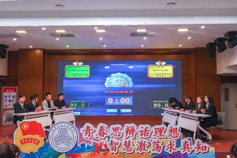 本次辩论赛总决赛以“人工智能的发展对高校的学习教育利大于弊还是弊大于利”为辩题,土木与铁道工程学院、现代技术学院双方辩手围绕辩题展开了激烈的角逐。正方土木与铁道工程学院代表队认为人工智能的发展对高校学习教育利大于弊,他们指出,人工智能能够为学生提供个性化的学习资源,提高教学效率,同时也有助于培养学生的创新能力和实践能力。反方现代技术学院代表队针锋相对,认为人工智能的发展对高校学习教育弊大于利,他们担忧人工智能可能会削弱学生的自主学习能力和人际交往能力,甚至可能导致教育资源的不公平分配。在自由辩论环节,双方辩手更是妙语连珠,针锋相对。他们不仅从理论层面进行了深入探讨,还结合具体案例进行了有力论证。现场气氛紧张而热烈,观众掌声不断。