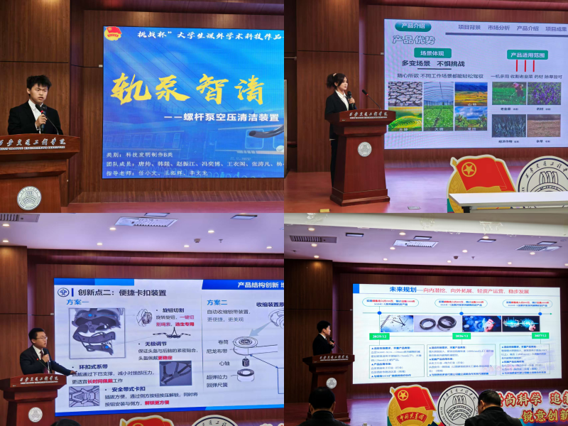 决赛现场由特邀专家组成评审团,从先进性、科学性、现实意义三维度综合评分。科技作品类赛道上演硬核的创新对决,10支团队通过PPT、演示视频、三维概念动画等形式对参赛作品进行全方位陈述汇报,展示从创新想法到技术应用的创新链条。西交院学子敢啃技术“硬骨头”勇于挑战创新,彰显了新时代青年的科创锐气和担当精神。在哲学社会科学类调查报告专场,12支团队聚焦社会发展痛点,调研涵盖地方文脉活化、行业技术革新、人工智能伦理等多元领域,用新时代青年视角解读乡村振兴、文化传承等时代命题,彰显了新时代青年学生扎根中国大地,让青春脉搏与学术强国征程同频共振的社会责任感。