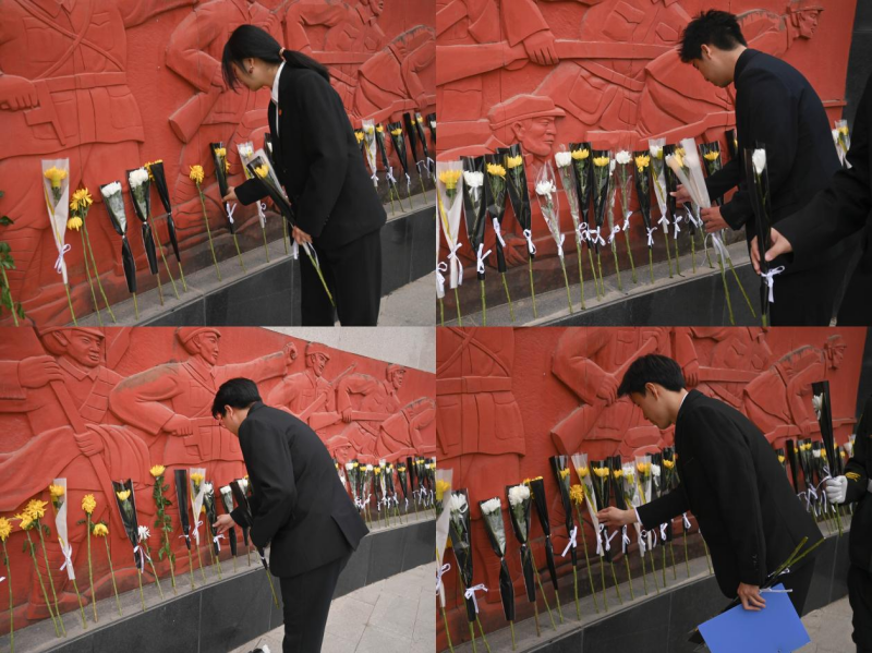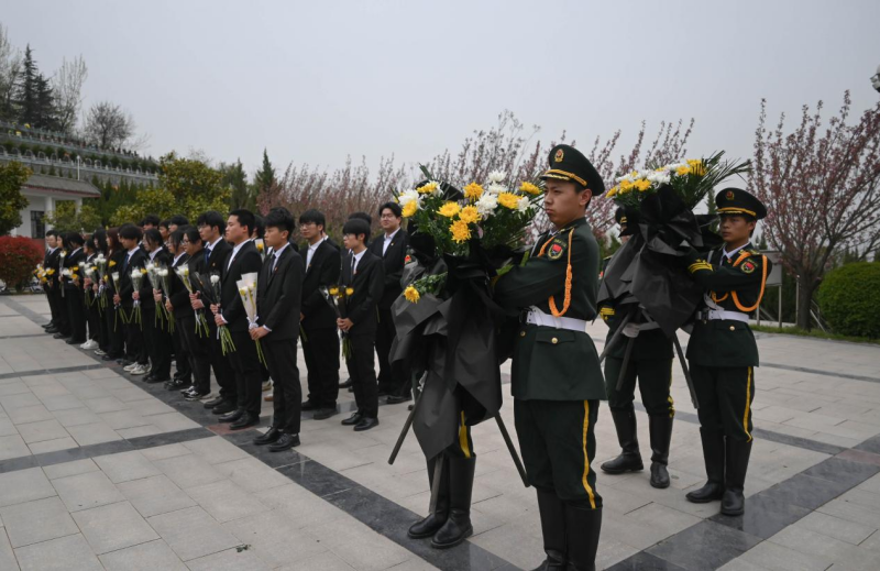 同学们怀着对革命先烈深切的缅怀和崇高的敬意来到鄠邑区金南山绿色墓园,面向革命烈士纪念碑,庄严肃立,奏唱中华人民共和国国歌并默哀,向为国家独立、民族解放而英勇献身的革命先烈表达深切的哀悼。随后,大家缓缓走向纪念碑,向革命先烈敬献花束以表对先烈们的无尽思念和敬仰之情。