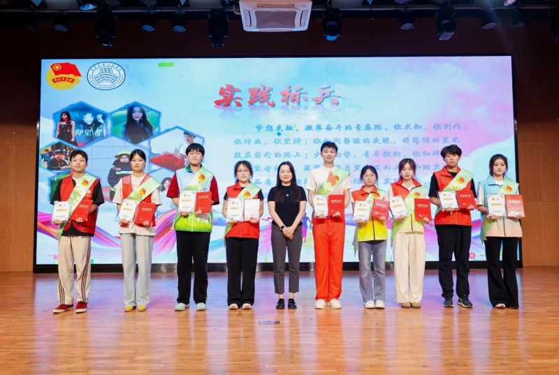校长助理潘春辉为实践标兵获奖者颁奖