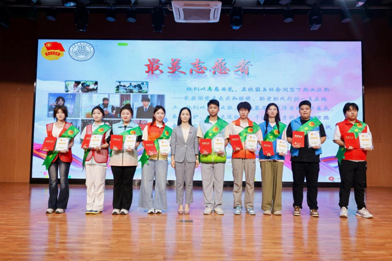 校党委工作部部长王宁宁为最美志愿者颁奖