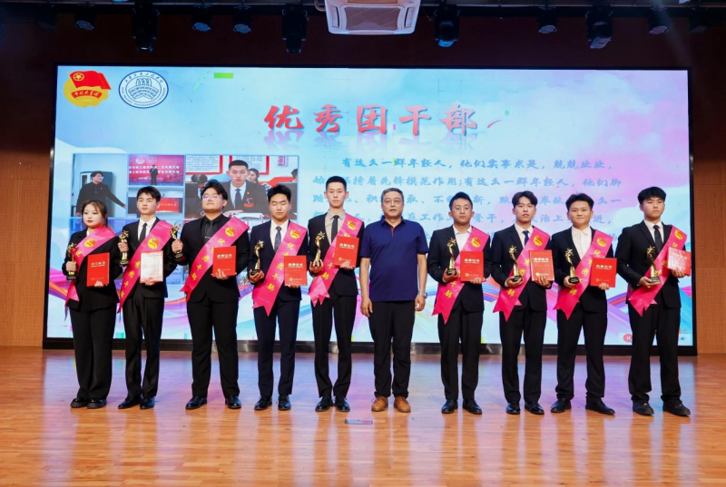 副校长吴伟为优秀团干部获奖代表颁奖