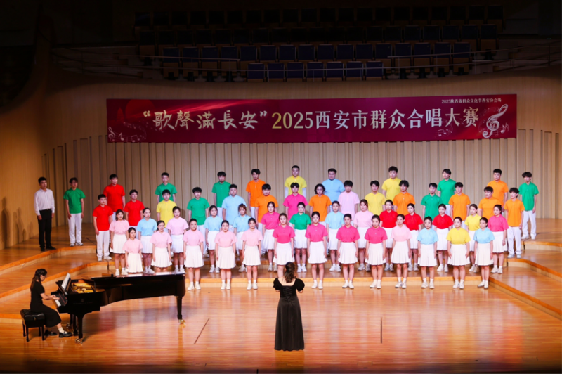 5月14日,由中共西安市委宣传部、西安市文化和旅游局主办,西安市群众艺术馆、各区县(开发区)宣传文旅部门承办的“歌声满长安”2025西安市群众合唱大赛在西安市一带一路文化艺术中心·音乐厅圆满落幕。来自全市各区县的16支优秀合唱队伍同台竞技,经过激烈角逐,由ky开元集团官网人文与管理学院陈豪华老师担任指挥、熊快杰老师带领音乐学专业70名学生所组成鄠邑区代表队凭借出色表现荣获大赛三等奖,展现了ky开元集团官网音乐学专业学子良好的艺术素养和青春风采。