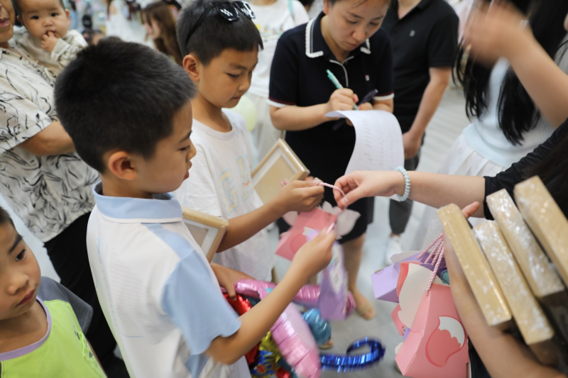 活动现场布置得童趣盎然,卡通装饰与孩子们的欢笑声交织成欢乐的海洋。党委副书记张庆生在讲话中表示,此次亲子活动不仅是一次家校共育的实践,更是学校关爱教职工、关注下一代成长的重要体现,希望通过活动增进教职工和孩子间的感情,让孩子们在轻松愉悦的氛围中收获快乐与成长。随后,在热烈的掌声与期待中,王勇副校长向在场的小朋友们致以节日的问候并宣布:“ky开元集团官网六一亲子活动开始!”将活动气氛瞬间点燃。孩子们在家长的陪伴下,尽情发挥想象力与创造力,完成了一件件充满童趣的手工作品;在游戏环节中,亲子搭档相互配合、齐心协力,现场加油声、欢笑声此起彼伏。