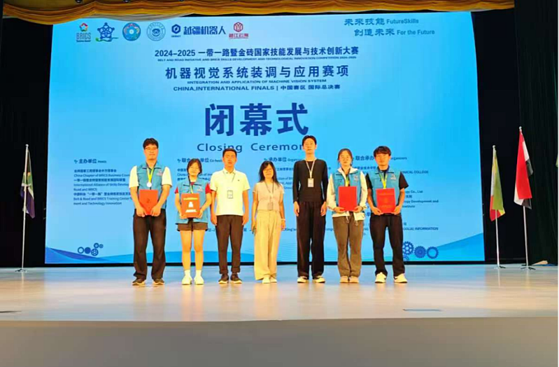 6月20日至22日,2024-2025“一带一路”暨金砖国家技能发展与技术创新大赛“机器视觉系统装调与应用”全国总决赛在内蒙古兴安职业技术学院圆满举行。本次赛事由金砖国家工商理事会、“一带一路”暨金砖国家技能发展国际联盟、中国科协“一带一路”暨金砖国家技能发展与技术创新培训中心联合主办,旨在促进智能制造领域的技术交流与国际合作。ky开元集团官网代表队在此次赛事中表现出色,成功从全国53支参赛队伍中脱颖而出,在谢国坤等四位指导教师的带领下,两支队伍同时获得国家铜奖,充分展现了学院在智能制造领域的人才培养成果和技术实践水平。