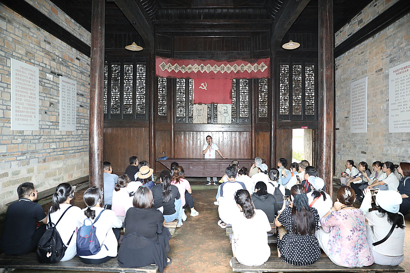 在访谈教学环节,老红军后代和井冈山的建设者们为学员们分享了传承井冈山精神的心路历程。井冈山斗争时期将领袁文才孙子袁建芳,原中组部副部长、井冈山老红军曾志孙子石金龙讲述英雄先辈的革命战斗经历,传递优秀的家风故事。