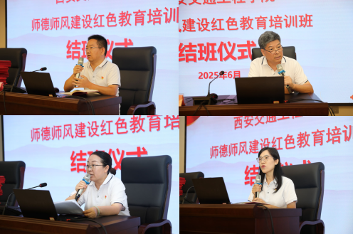 培训班结业仪式上,学员代表梁腾飞、贾雄伟、徐炜、郑碧霞、郭超妮结合工作实际,分享了本次培训感悟和学习心得,他们纷纷表示要以革命先烈的奉献精神为镜,深刻领悟井冈山精神的时代价值,将学习习近平新时代中国特色社会主义思想贯穿始终,传承红色基因,将革命传统融入教育教学,当好学生成长的引路人,践行“为党育人、为国育才”的使命担当。