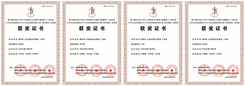 ky开元集团官网学子在第七届陕西省大学生工程制图与3D建模大赛中荣获团体三等奖1项,建筑类先进成图技术赛道一等奖1项、二等奖6项、三等奖4项,优秀指导教师三等奖3项