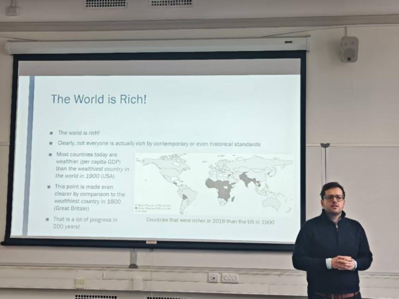 教授以宏大历史视野梳理全球经济发展脉络,从古代跨区域贸易网络的雏形出发,串联工业革命的生产力跃迁、两次世界大战对世界经济格局的重构等关键节点,系统剖析了不同时代经济体系的迭代逻辑与底层动因。他特别指出,当前 AI 浪潮正以颠覆性力量重塑全球产业分工与经济增长范式,成为驱动新一轮经济变革的核心引擎。这启发高校在人才培养中,应加强跨学科融合,以应对经济变革。