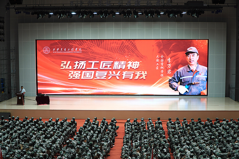 随后,李万君以《匠心筑梦,强国有我》为主题,结合自身三十余年的奋斗经历,为同学们讲述了从1987年进入原长春客车厂以来,始终扎根一线、迎难而上、攻坚克难的故事。他强调,正是对“精益求精、追求极致”的坚守,以及对国家高铁事业的责任与使命,才让他在平凡岗位上创造出了非凡成就,他表示青年学子要厚植家国情怀,勇担时代使命,在学习和实践中不断打磨技能、锻炼意志,以匠心成就梦想,以奋斗创造未来。