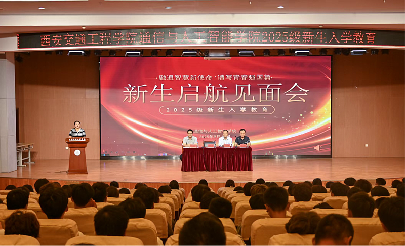 9 月 16 日晚,通信与人工智能学院 2025 级新生启航见面会在学校学术报告厅隆重举行。学院领导班子全体成员、教师代表、新生班级辅导员以及 2025 级全体新生参加了此次会议,会议由党委书记张雯雯主持。