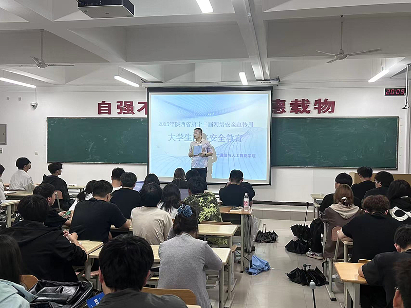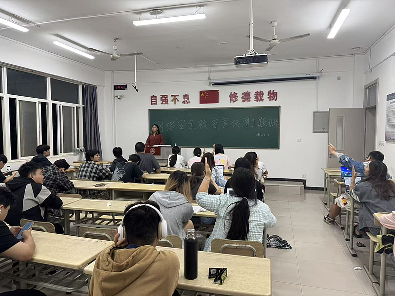 通信与人工智能学院依托学科优势,学院打造“知识 + 实践”融合的专业型教育模式。活动期间,部分班级邀请网络安全专业教师开展专题讲座,结合人工智能算法安全、通信数据传输安全的真实案例,剖析行业风险并讲解专业防范手段,实现网络安全知识与专业学习的精准衔接。